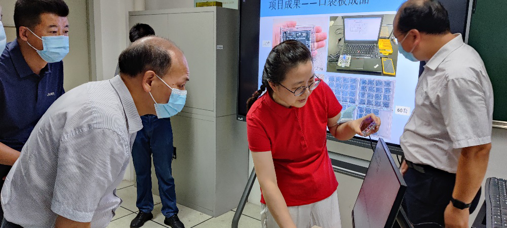 On the afternoon of August 10th, President Yan Xiaohong visited the School of Computer Science and Communication Engineering to inspect and guide the development of self-made experimental instruments and equipment and the later teaching operation of virtual simulation experimental platform, and listened to the work report of the project research and development team.